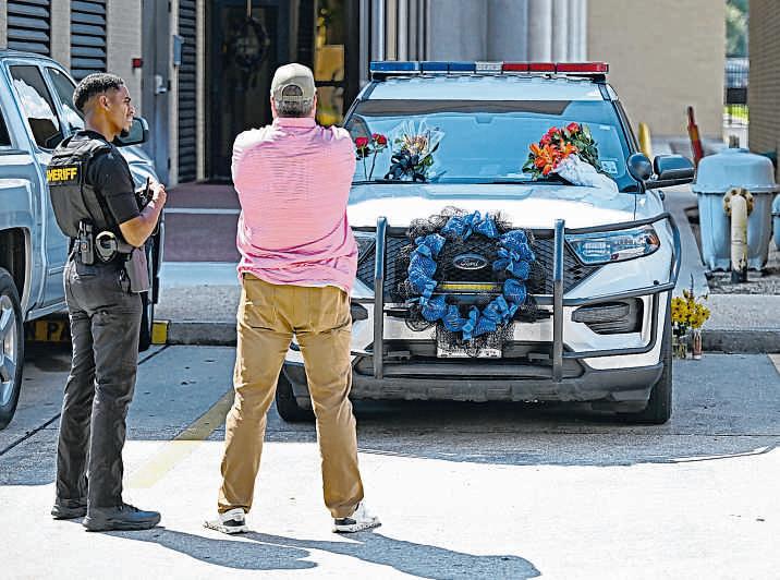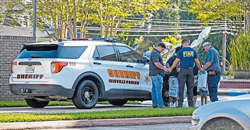 Residents waited somberly outside the Iberville Parish Courthouse on Tuesday, with the flags at half-staff and two mobile blood collection trucks parked outside the entrance — the only indication that something tragic had happened there the night before.