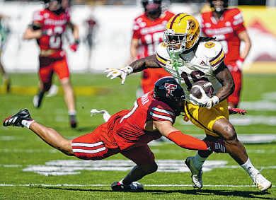 University of Louisiana at Lafayette running back Bill Davis runs with the ball against the Southern Miss defense during their Sun Belt Conference football game at Our Lady of Lourdes Stadium in Lafayette on Saturday.
