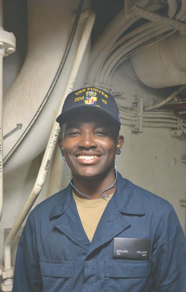 Anthony recently transferred from Naval Station Great Lakes in Illinois to Naval Station Norfolk, the largest naval complex in the world. He is currently assigned to his first duty station on a destroyer, the USS Porter. His first responsibility is to be trained as a fireman and to learn to stand watch.