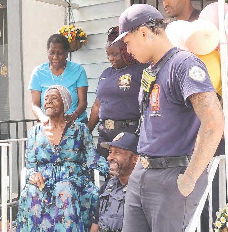 On Saturday afternoon, August 16, the 1700 block of Fifth Street NW was crowded with over 100 family members, neighbors and community well-wishers congratulating Mrs. Gladys Williams on her 100th birthday. ere were refreshments available on both sides of the street. Proclamations were read from Mayor Muriel Bowser and Ward 2 Councilmember Brooke Pinto congratulating Mrs. Williams on her birthday. e event was topped by the arrival of a retruck from the DC Fire Department’s Engine Company 6. Mrs. Williams was born in North Carolina and came to the District at the age of ve. She married a member of the military and traveled the world with him. She also worked as a nurse for 40 years. She has lived at the same address for over 50 years. At one point, Mrs. Williams addressed the crowd, welcoming everyone. She said that she loved everyone there, “no matter who you are, what you look like or where you came from.” ◆
