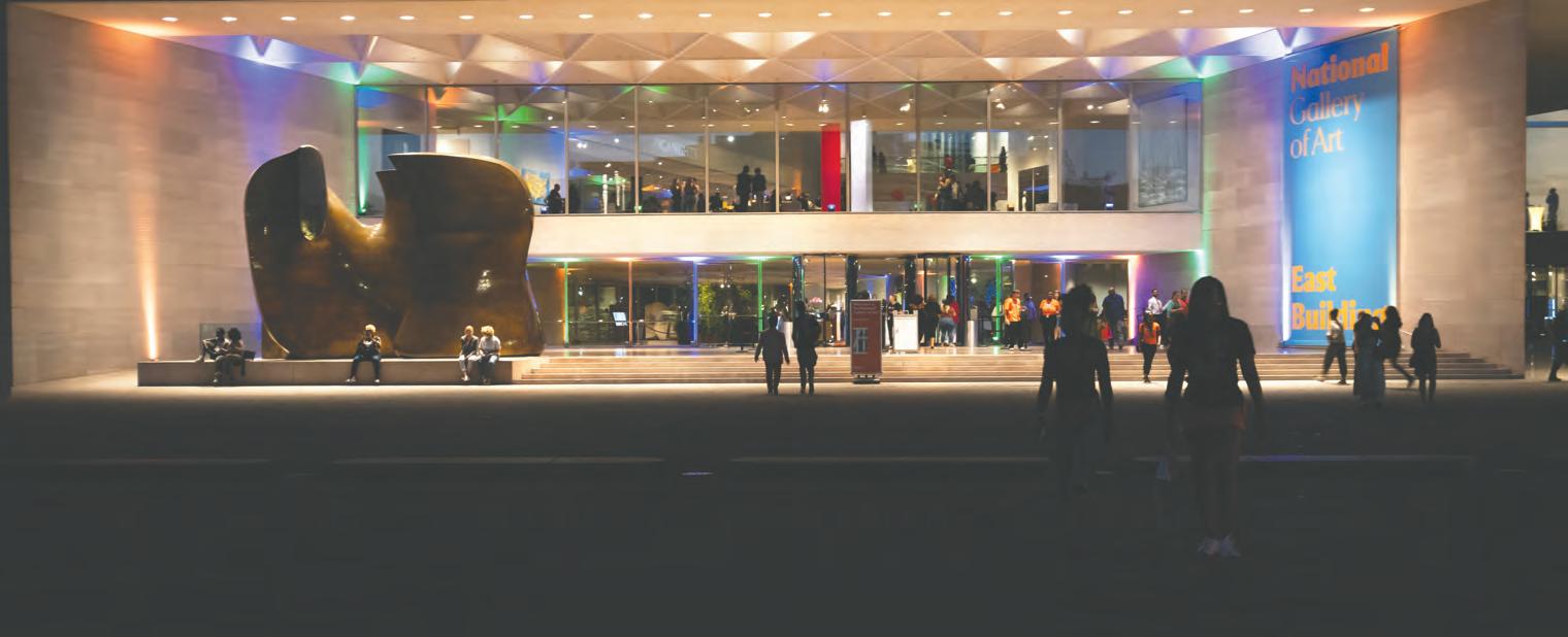 National Gallery Nights Returns this Fall e NGA East Building comes to life in this popular, 6 to 9 p.m., after-hours program. Join them for themed evenings with music, live performances, artmaking, pop-up talks, and more. e season kicks o on ursday, Sept. 11, with “Back to School.” Embrace rst-day-of-school energy with creative projects using everyday materials. “Strike a Pose” on Oct. 9 and celebrate the exhibition Photography and the Black Arts Movement, 1955–1985 with vintage-inspired fashion, photo booth moments, and rare West Building access after dark. e season ends on Nov. 13 with “Art Under the Stars” as visitors experience the exhibition e Stars We Do Not See: Australian Indigenous Art with didgeridoo performances, textile weaving, and rooftop stargazing. e rst lottery opens Sept. 1, at 10 a.m. Walk-up passes are also available starting at 5:30 p.m., the day of each event. nga.gov.