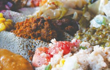 Sample the shiro, a mash of chickpea flour, berbere spice blend, onions and garlic. Enjoy gomen, a slow-cooked side of collards seasoned with ginger and garlic. Kik alicha, yellow split peas combined with ginger, garlic and turmeric, provides a needed protein. Yesmire wot is a spicy red lentil stew. Don’t miss the fosolia, a traditional green bean stew or the potato wot. In fact, a vegetarian platter can incorporate as many as 20 different items, depending on the size of the party ordering.
