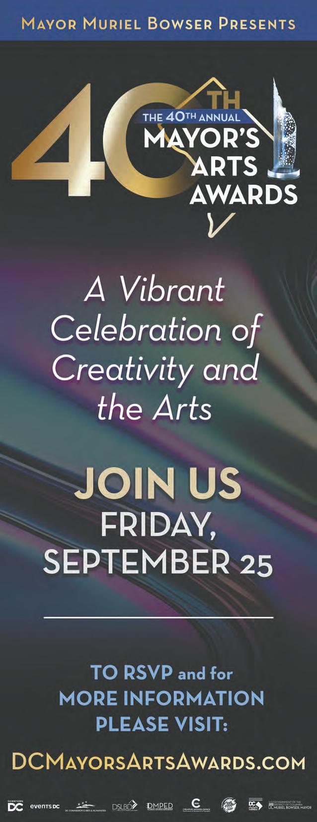 Art Enables, 2204 Rhode Island Ave. NE, announces the 19th annual “Outside Forces”, their exhibition showcasing the power, originality, and imagination of self-taught artists from across the country. is year’s show, Sept. 2 to Oct. 26, brings together independent creators and artists from 25+ sister studios, each o ering bold, inventive work that exists outside the bounds of mainstream art traditions. From vibrant paintings to striking mixed-media pieces, “Outside Forces” is the perfect introduction to the world of outsider art. e opening reception is on Saturday, Sept. 6, 5 to 7 p.m. Gallery hours are daily, except Sundays, from 10 a.m. to 4 p.m. art-enables.org.