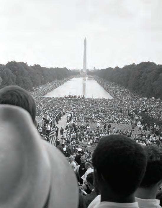 In Warren Le er’s grainy black and white photo taken on August 28, 1963, the Washington Monument is re ected awlessly in the pool that stretches eastwards from the base of the stairs leading to the Lincoln Memorial. Only the peaks of the elms lining the water are visible, because every inch of space has been occupied by the 300,000 people that have ocked to the nation’s capital for one reason: e advancement of equal rights under the law for all African Americans.