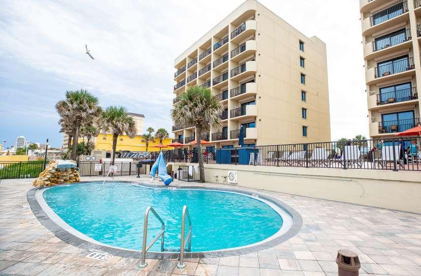 Tropic Sun Towers is located just minutes from historic Daytona Beach, home of NASCAR’s Daytona 500 and the world-famous Bike Week. We offer one and two-bedroom accommodations allowing for one to six guests. These spacious condos feature fully-furnished kitchens and a dining area where your family can enjoy their meals. Beautiful sunrises and sunsets can be enjoyed from your private balcony (except the first floor). Some of the amenities provided will allow you to relax on the sun deck, lounge by the pool or find your spot on the beach behind this beautiful oceanfront resort.