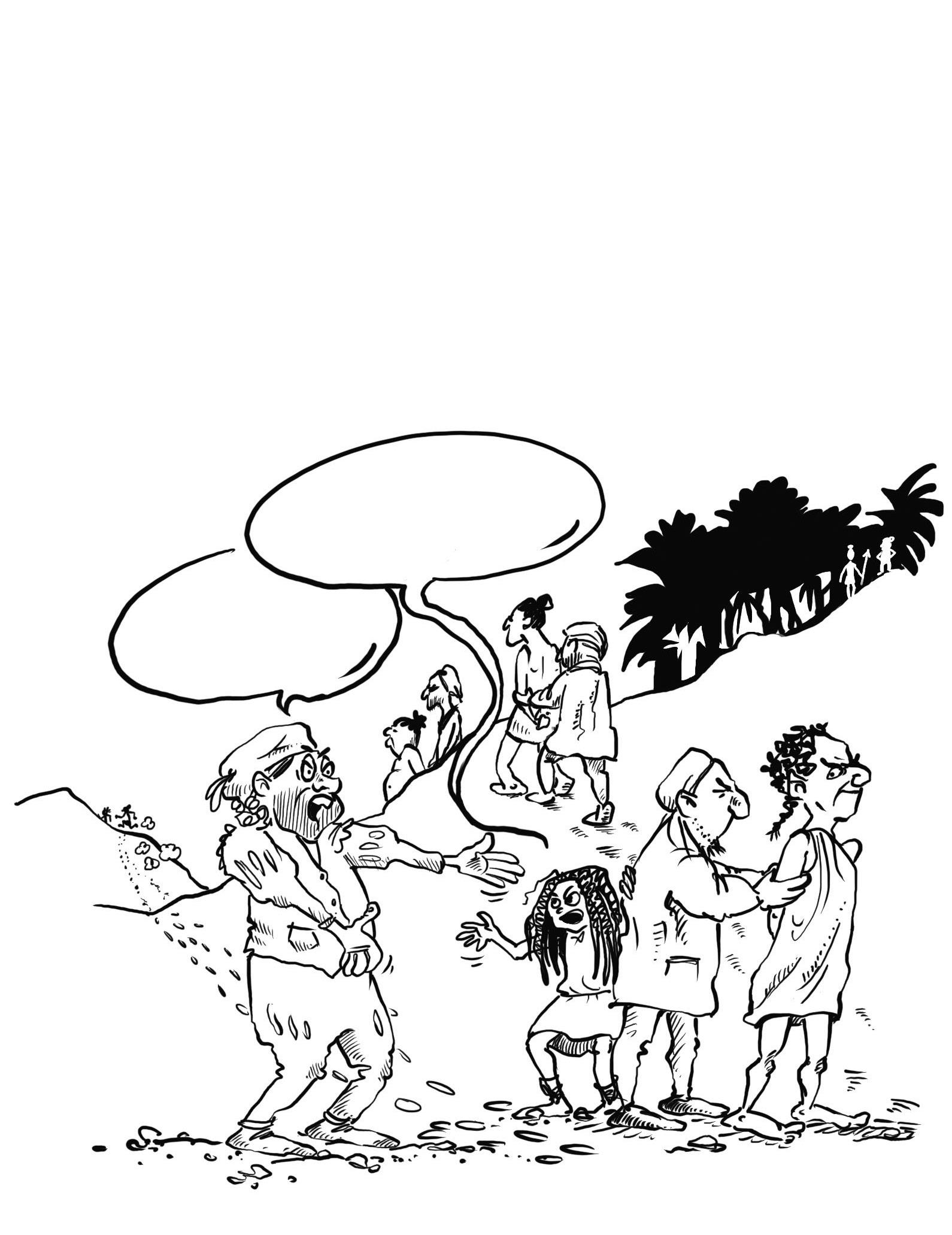 Der blir vi tatt imot som venner. Menneskene på øya ser på den rare hudfargen vår, og vil ta på de rare klærne våre …
