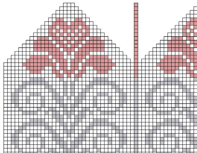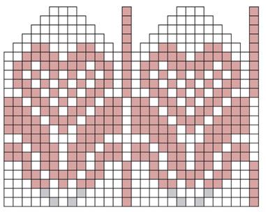 Strikk 1 omg rød og så mønster i glattstrikk som vist i Diagram 1.