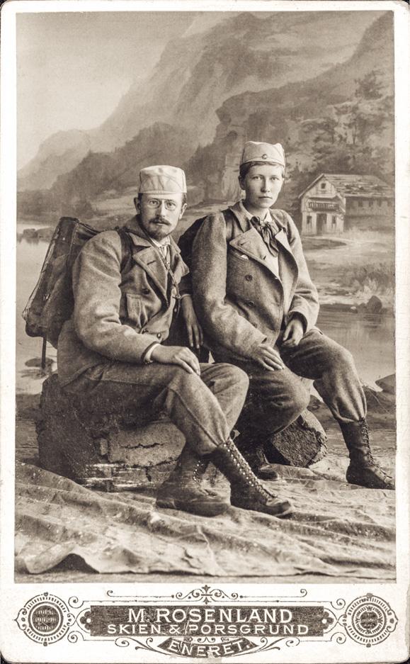 Resvoll ble fotografert kortklipt i bukser i 1896. Hun og mannen Andreas Holmsen har matchende buksedrakter.