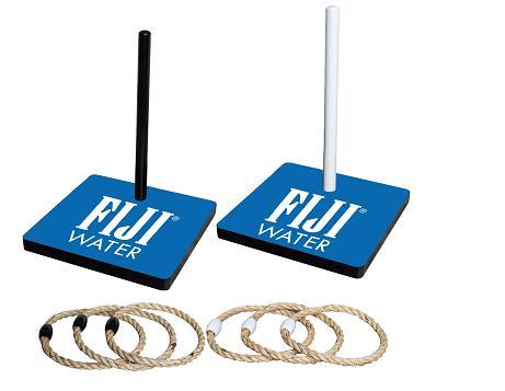 Ring Toss Game Whether you’re hosting a backyard BBQ, hangout, or tailgating, no party is complete without Ring Toss! Includes 2 wooden bases decorated in full color graphics and 2 sets of rings all packed in a carrying case, this is sure to be fun for all! Full color transfer 50-100 units: $41.50 per set Setup: $75.00 Production time: 20-25 business days
