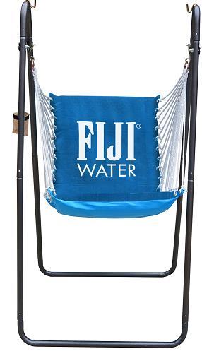 Swinging Hammock •Soft Spun Polyester Fabric •Large chair size. 26 W x 22 D x 28 H inches •Easy to assemble steel frame has a rust resistant powder coated finish •Weight capacity is 275 pounds •Made in the USA 1 color/1 location imprint 50-100 units: $180.00 ea Setup: $75.00 Production time: 10-12 business days