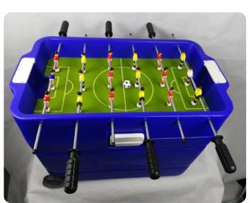 Portable Foosball Cooler with Wheels Dimensions: 26.7*23.6*18 inches // Materials: HDPE/PS PU Foam // Production time is approximately 4-6 1 color imprint/1 location 100: $225.00 ea Setup: $50.00 Production time: 4-6 weeks