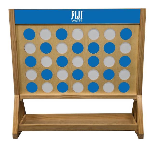 Take this classic game outdoors with this durable, entertaining set – it’s a great item for bars, outdoor restaurants, hotels, and parties. This Giant 4-in-a-Row Game is manufactured of solid varnished wood and is quick and easy to put together. Includes black and white discs (35 total) and a carry case with shoulder straps. Full color on top/custom chips 50-100: $220.00 ea Setup: $150.00 Production time: **AVAILABLE MID MARCH