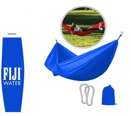 Take time to relax outdoors! This portable hammock is made of heavy duty polyester that packs into itself so that you can take it nearly anywhere. Includes two elastic straps and carabiners and supports weight up to 300 lbs. Oversized imprint on the hammock 50-100 units: $54.00 ea …$34.00 ea if just printing the pocket Setup: $75.00 Production time: 10-12 business days