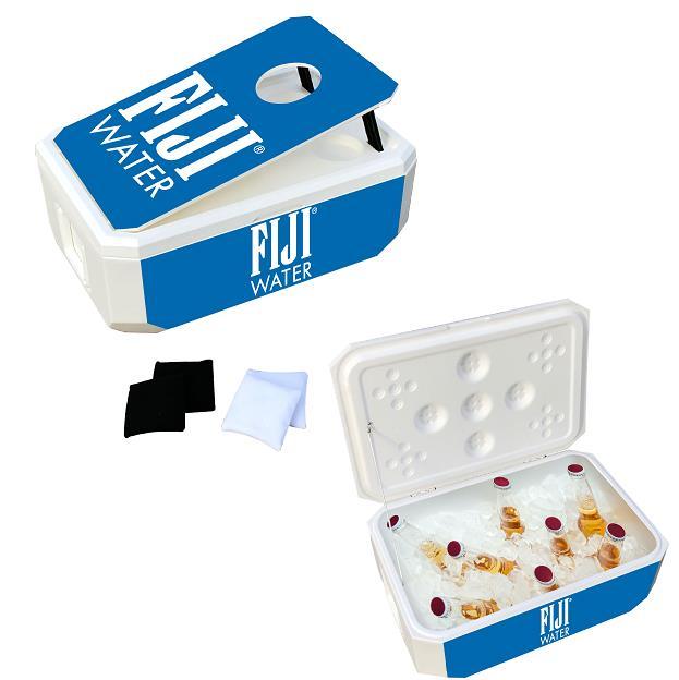 Cooler Never play cornhole without a drink in your hand again! Able to hold 40-cans, the Cornhole Cooler is lightweight and portable, yet heavy duty. Bean bags are included and are available in white and black. Dimensions: 24”l x 16”w x 9”h Includes imprint on top + one side 50-100 units: $152.00 ea Add second side for $10.00 more per unit Setup: $150.00 per location Production time: 20-25 business days