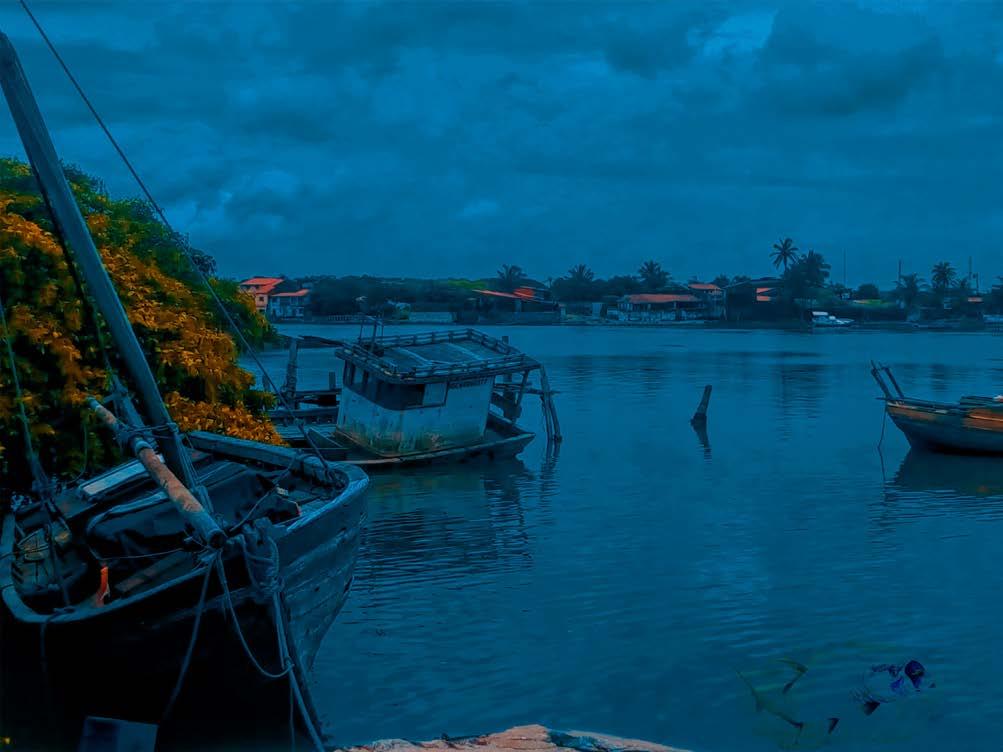 Militantemente, Joyce Monteiro argumenta: “O extrativismo industrial é um modelo econômico e político baseado na mercantilização e na exploração desenfreada da natureza, que vem se aprofundando desde os anos 1990 na América Latina. Esse modelo causa danos irreversíveis, poluindo o ar, o solo e as fontes de água, e gerando grandes perdas de biodiversidade. Além disso, agride os direitos humanos e coletivos das comunidades afetadas e destrói seus modos de vida e suas economias tradicionais, tornandoas dependentes de mercados externos. Esta série fotográfica é resultado de uma movência ciclística, realizada entre setembro de 2020 e maio de 2021, percorrida pelo litoral oeste cearense e pelas reentrâncias maranhenses. Os registros feitos através de uma câmera de celular documentam a cultura da pesca artesanal e do extrativismo sustentável, onde mulheres e homens interagem com a natureza para a própria subsistência e renda familiar.”
