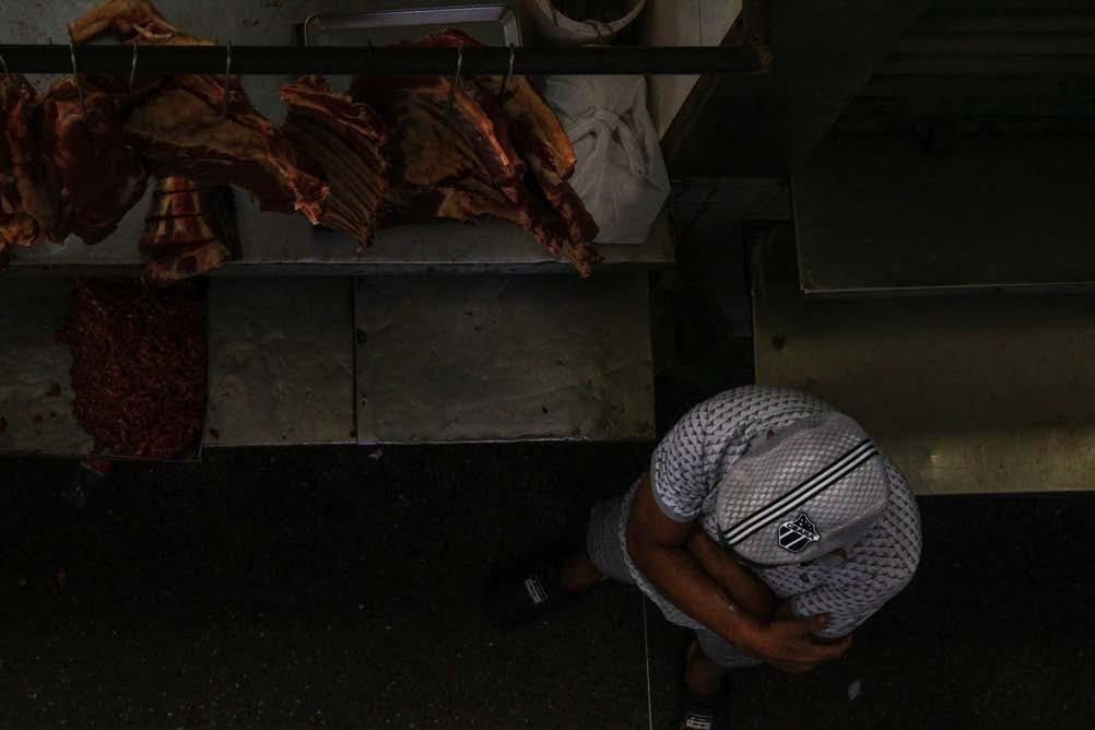 Nathália Fiuza nos chama às falas para jamais nos omitirmos. E é incisiva e eloquente, tanto nas fotos quanto nas palavras: “O trabalho aqui posto é uma observação feita no mercado São Sebastião: a ligação e o convívio das carnes mortas com as pessoas que transitam. Nos caminhos e entrelaços pela cidade de Fortaleza, capital do estado do Ceará, nordeste do Brasil, existe o mercado. Em minhas pesquisas observo como as pessoas lidam com os espaços urbanos, com suas ramificações, como pertencem a algum lugar, ou como estão sem sequer pertencer. Em meio à uma pandemia, qual a ligação da morte pandêmica com a naturalização da morte ao nosso redor? Qual referência podemos fazer em um país com um número grande de corpos mortos por dia? Em qual vitrine está nossa carne, nosso corpo? Corpos em vitrines midiáticas e naturalizados. Como o corpo morto que compramos em um mercado, naturalizamos a morte até estarmos na vitrine posta em estatísticas.”