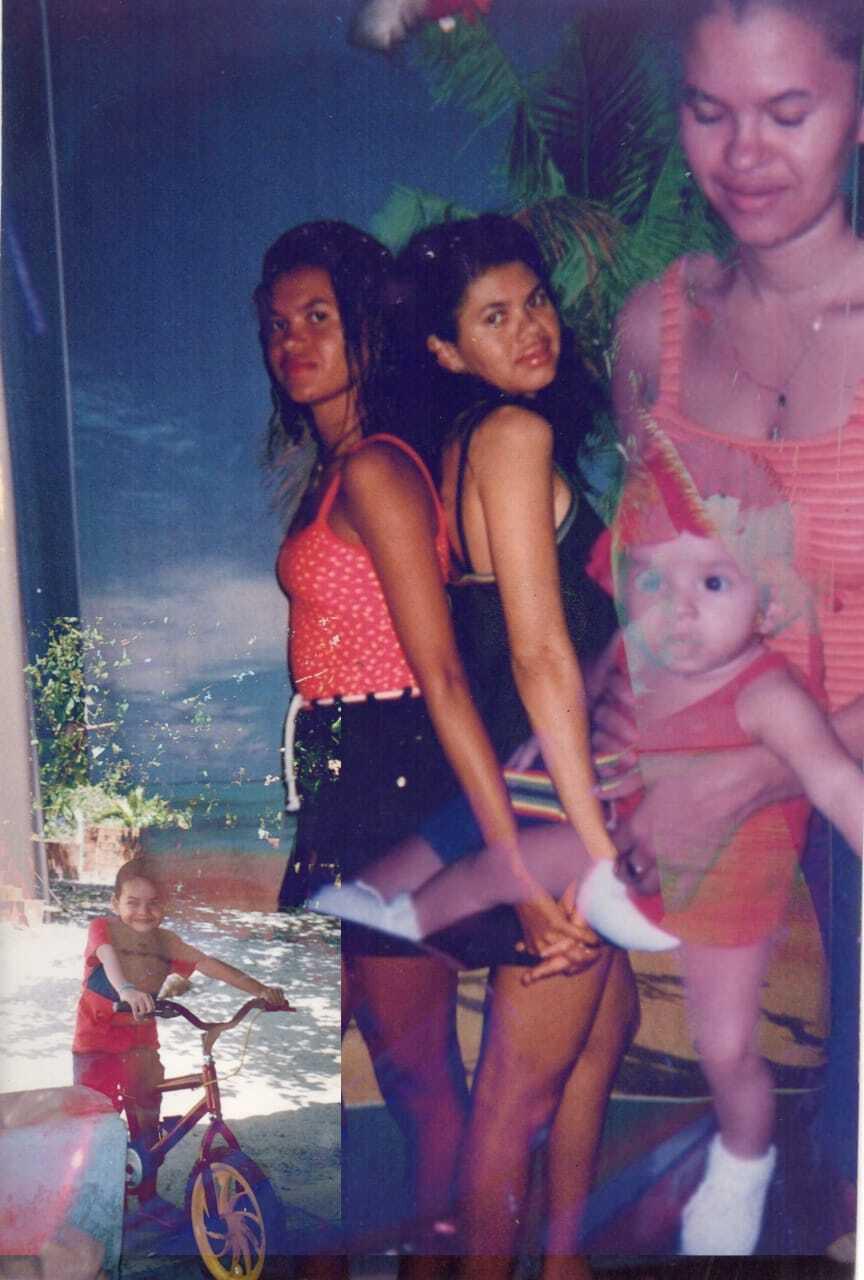 Ela é contundente, determinada, radical na sua proposta: “Eu aprendi desde cedo que ‘o passado não é estático’. Aprendi porque me comparavam com um tio das minhas tias. Tio de minha mãe. Um tal de Tio Avelino. Falavam que eu era excêntrica como ele, criativa como ele, uma bixa como ele. Mas desse tio nunca achei fotografias. Sumiu nas lembranças e nos registros. Se eu não fosse uma travesti agilizada e uma historiadora atenta, não estaríamos falando sobre ele. O passado está em constante movimentação dentro de nosso cérebro. Neste trabalho, eu me volto para fotos analógicas antigas, dos anos 1997 – 2008, que resgatei de álbuns de família, trabalhando com sobreposições, colagens e efeitos visuais. São fotos de minha mãe, meu pai, tios, tias, fotos minhas e de outras crianças. Faço isso pois é chegada a hora de falar sobre minha história e minhas experiências. Meu pai jovem, minha mãe grávida. O que existia antes de mim? Quem sou eu nessa história? Por onde andei? O que fiz?”
