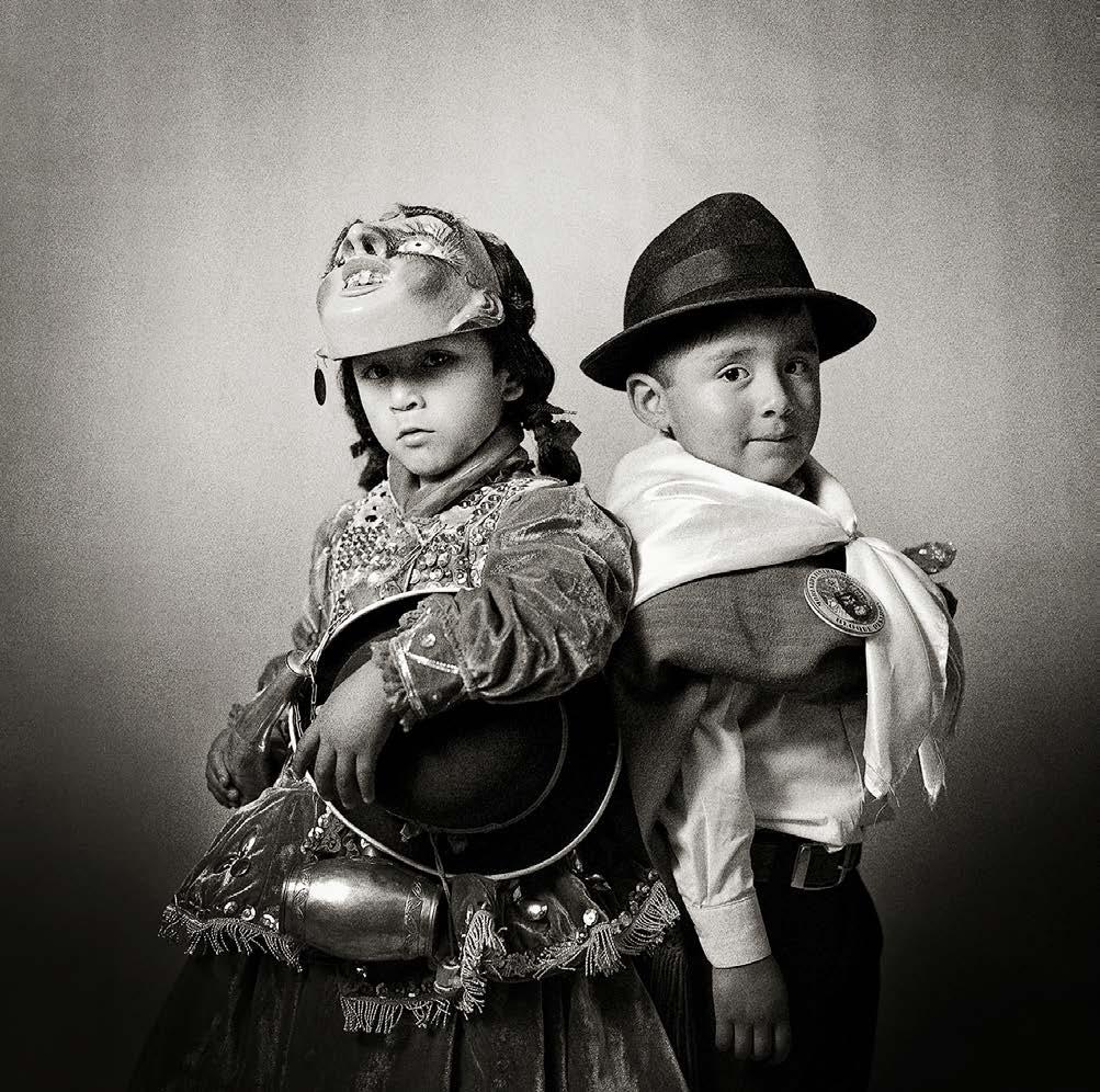Torrez, feito entre 2015 e 2019. Cocani são os comerciantes de coca da etnia Aymara, que se estabeleceram na cidade boliviana de Oruro na época em que a região prosperava na mineração de prata e estanho. Vamos usar três palavras para contemplar e admirar as imagens: memória, dignidade, densidade. A estética de Diego Echevers Torrez retira o tempo “Cronos devorador” da nossa ótica. Aqui, há uma permanência. Uma espécie de eterno respeito pelo passado e pelas tradições. Um culto a pessoas historicamente marginalizadas. O fotógrafo resgata essa humanidade. Porque suas fotos transpiram dignidade, densidade. A escolha do preto e branco não é por acaso. Não há cores para distrair a atenção do espectador. Cada personagem é recriada ontologicamente em nosso consciente.