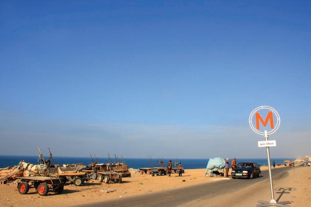 The title of this 2012 work: “Metro in Gaza”. Mohamed Abusal envisioned a series of seven underground stations that would link the city of Gaza to Jerusalem, to Rafah and to the north. We are facing utopias: subway stations in the Gaza Strip. An artistic and political intervention. A manifesto for peaceful coexistence, for peace. For connection. A communication proposal, what the human being has best developed, and which is at the heart of coexistence... or conflict. Art has strange powers. Especially conceptual art and, within it, land art. In this case, where is the art? In the photos, in the symbolic thought of the viewer, in reality –beach, city, desert – with human intervention, in the artist’s intention, in the underlying idea waiting for an “Open Sesame”? Palestinian multi-artist Mohamed Abusal combines installation, video, photography, paintings, drawings. Its “Metro in Gaza” (2012) proposes a network of metro lines to connect the different areas of the Gaza Strip. He made a lighted metro sign and photographed it where he imagined the metro stations should be. His gesture/installation brings artistic transgression to cry out for unity. His goal is to make a critical commentary on contemporary life in his home Gaza. Mohamed Abusal was born in Gaza in 1976. He graduated in Finance and Administration, but chose art to communicate with the world. Without neglecting photography, painting is his greatest passion, where he seeks energy to recharge his mind and create beautiful works. He has held exhibitions notably in France, in addition to the USA, the United Kingdom, Australia and Dubai. In 2005 he received the Charles Aspry Award for Contemporary Art. He is a founding member of Eltiqa, an active group of contemporary artists who formed in 2002. His painstaking