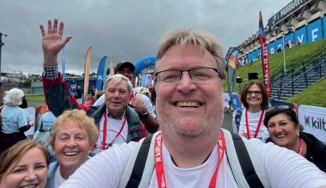Supporters taking a photo in front of the big screen at the Heart of London Bridges Walk. Pg. 17.