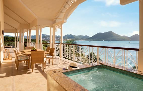 On Saint Lucia’s most breathtaking beach and with the island’s only private marina, this all-villa suite resort is a few minutes from Rodney’s Bay nightlife, restaurants, and shops. Offering spacious, familysized one-to three-bedroom villa suites, three restaurants, three bars, kids’ club, teens’ program, daily on-resort activities, tennis court, pickle ball, an opulent spa and a state-of-the-art fitness centre, plus complimentary non-motorised watersports - this resort caters to guests of all ages. All suites boast marina, ocean or beachfront views and have fully equipped designer kitchens, lounge and dining rooms as well as expansive terraces, many with private plunge pools and butler services. The resort also offers a gourmet all-inclusive plan option. New for 2024, is Suru Restaurant, an Asian fusion concept embracing both local and global flavours.
