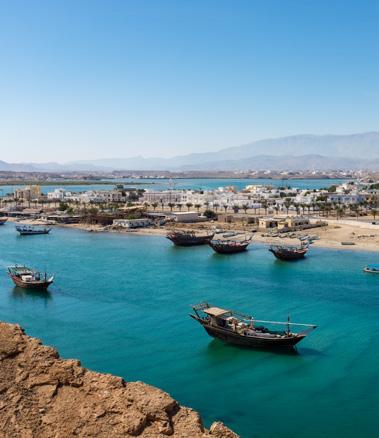 From sleek city hotels to Bedouin encampments under starry skies, Oman offers some incredible places to stay, and no shortage of ways to explore, whether it’s a cruise on a traditional dhow boat, a camel safari across burnt ochre dunes or a heart-pounding hike through the Jebel Akhdar mountains. You can kayak with dolphins, watch green turtles nesting in the early hours of the morning, and even paraglide from the top of a mountain. It’s a richly textured country, bursting with flavours: fragrant rosewater, slow-cooked shuwa over spiced rice, honey-soaked desserts and coffee served with cardamom. Ancient landscapes are dotted with apricot and pomegranate trees, sleepy smallholdings and crumbling forts.