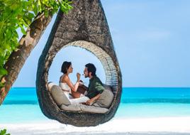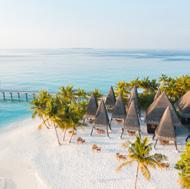Both couples and families are well catered for with a selection of traditionally-inspired – yet still contemporary – villas, all of which come with direct access to the beach or turquoise lagoon: we love the entry level beachfront villas, which are among the largest in the Maldives. You can also enjoy the fully equipped gym, the sports and recreation centre offering ample activities and floodlit tennis courts, dive centre (this is the place for it!) and some irresistible pampering at the over-water spa. Unwind to the sound of live bands and piano music, and don’t miss the weekly traditional Maldivian drum show!