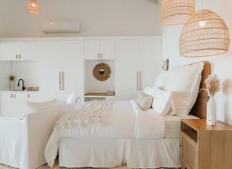 Little Good Harbour is a sophisticated beachside hideaway in Shermans, northwest Barbados. Just 20 minutes from busier hotspots, it offers a tranquil escape. The 20 luxurious suites blend Balinese and Caribbean décor, set around gardens and two pools. Each has a living area, terrace or balcony, and a fully equipped kitchen. Across the lane, are the One-Bedroom Garden Suites, TwoBedroom Garden Suites and the Three-Bedroom Vineyard Suites. On the beach side, the historic Ocean Fort Suites, part of 17th-century Fort Rupert, add to the charm. The renowned Fish Pot restaurant, right on the water’s edge, is a favourite with guests and visitors alike.
