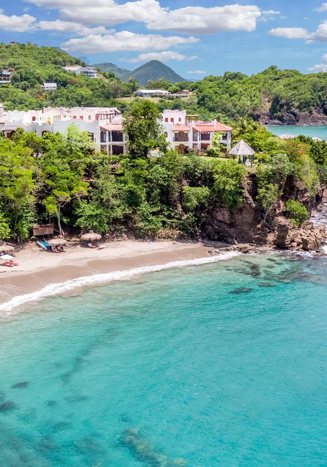 Sitting on top of a stunning ocean bluff with fabulous views across the water to Pigeon Island, you can’t help but be captivated by the sheer romance and beauty of this wonderful Spanish haciendastyle Relais & Chateaux boutique hotel. Owned and expertly managed by our good friends, the Gobat family, Cap Maison has recently unveiled an incredible top-to-toe $3million refurbishment. Working with renowned designers, all 50 rooms and suites have been elegantly updated whilst retaining their charm. There’s also been a refresh of the lobby, spa, gym and club room, and restyling of the excellent restaurants Cap Maison is renowned for. Chef Craig Jones oversees the two restaurants at Cap Maison and prides himself on the dedication to local produce, from the daiquiris at the Cap Bar to the elaborate desserts, with a strong emphasis on local seasonal ingredients. The Cliff at Cap is one of the island’s top dining destinations with a menu inspired by a fusion of Caribbean and French influences. The Naked Fisherman beachfront restaurant provides a toes-in-the-sand experience, enjoy your dinner whilst listening to the lapping of the waves or watching the stunning sunsets. What truly makes Cap Maison stand out is the attentive service and the many thoughtful touches; from the Champagne on arrival to the turndown service and rum punch kit in your room, the team here goes to great lengths to ensure their guests have a memorable stay.