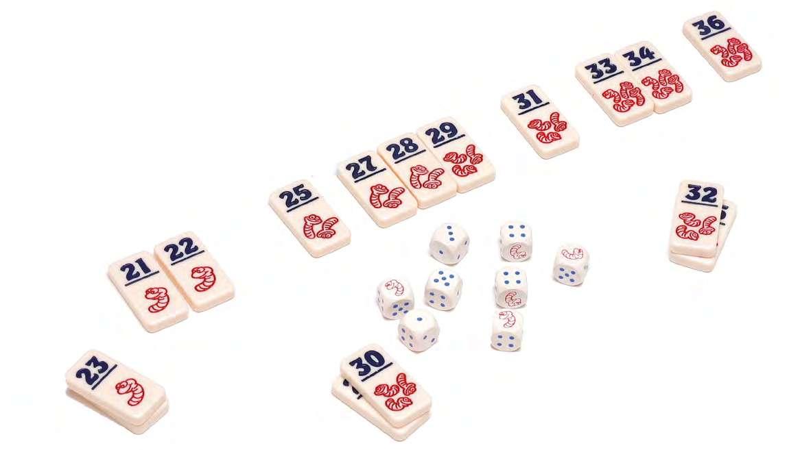 Contenu : 28 tuiles, 3 dés spéciaux, la règle du jeu.