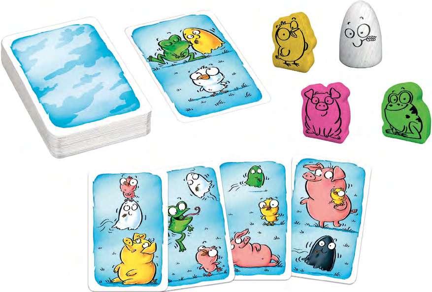 Le fermier Pippo est très chagriné d’avoir perdu un animal de la ferme. Il faut l’aider à le retrouver ! Piochez une carte représentant quatre animaux de couleur différente et observez-les bien. Le premier joueur à repérer l’animal manquant dans la bonne couleur remporte la carte. Celui qui a retrouvé le plus d’animaux gagne la partie.