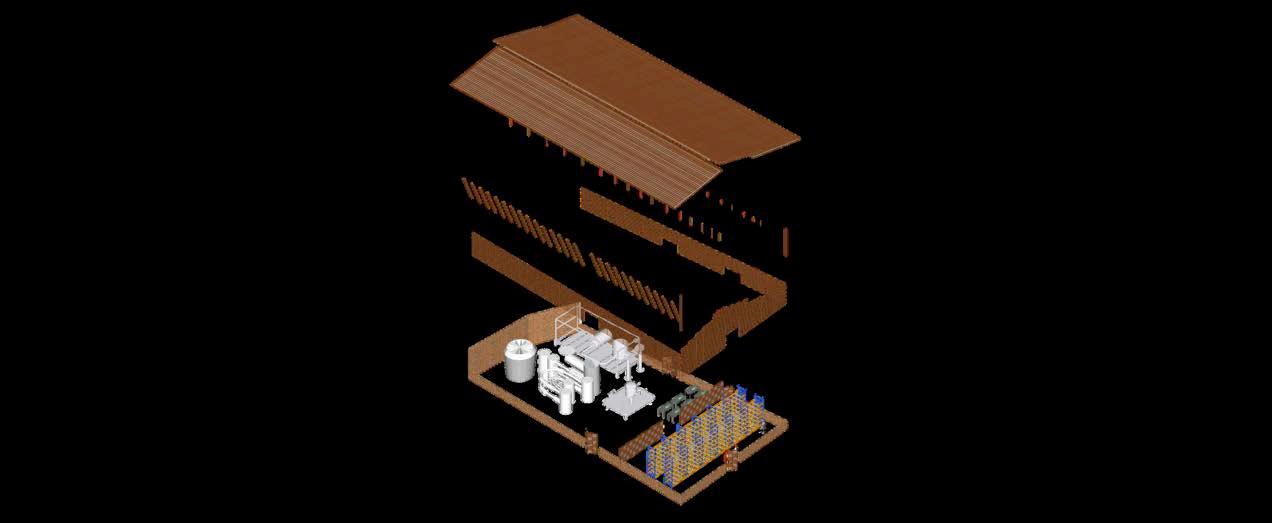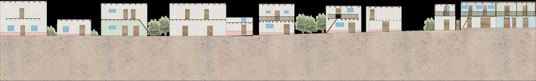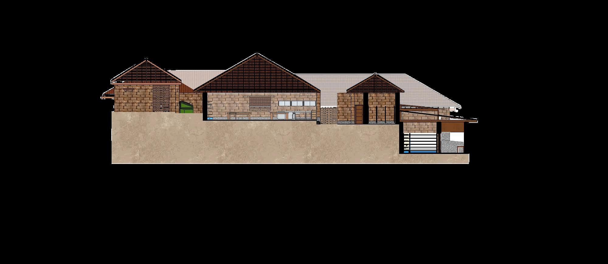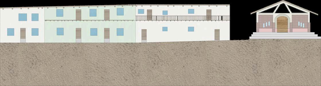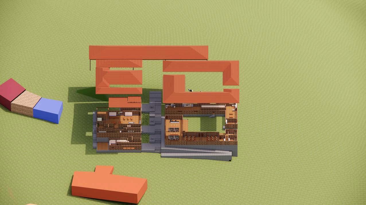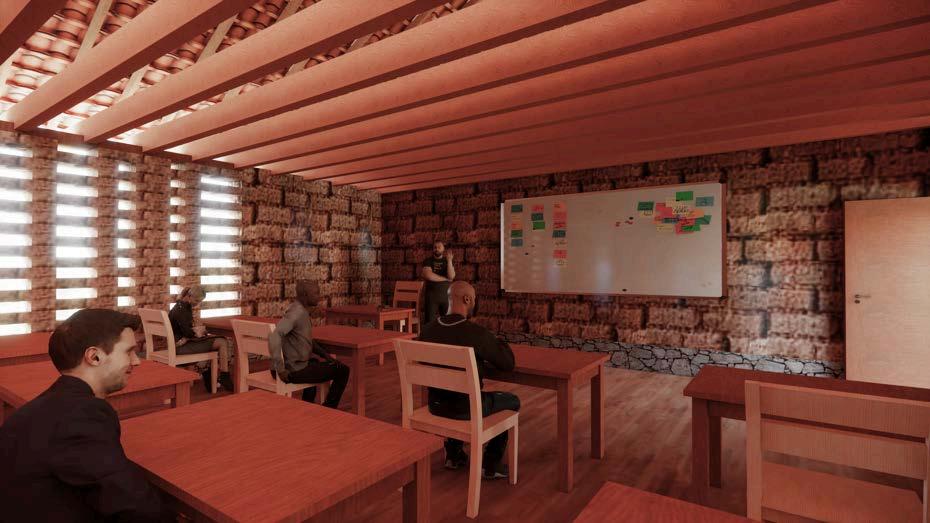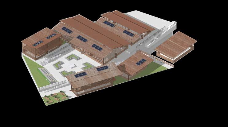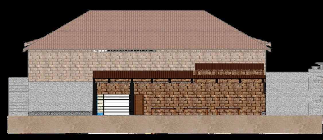 Altratarsedeuncentrodeaprendizaje, la espacialidad no solo debe ser eficiente, sino también inspiradora. En este sentido, la elección de una arquitecturahonesta,coherenteconsu entornoyfielalosvaloreslocales,tiene un impacto directo en el tipo de experienciaeducativaquesepromueve. No es lo mismo aprender en un lugar neutro, genérico, que hacerlo en un espacio donde se manifiesta la identidad colectiva, donde la arquitecturahablaelmismoidiomaque los saberes tradicionales, donde los jóvenes pueden comprender que el conocimiento no está reñido con la tierra,conelbarro,conlamadera.Esta secciónmuestraqueesposiblegenerar ambienteseducativosdesdelorural,sin necesidaddeimportarmodelosurbanos o estandarizados. Así, el edificio se convierte también en un maestro silencioso, que enseña sin palabras el valor de lo propio, la importancia del cuidadodelentorno,ylaposibilidadde hacer arquitectura desde la memoria y