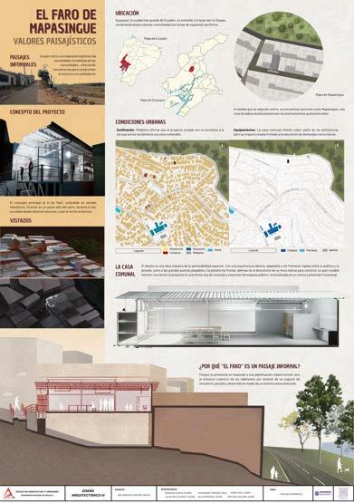 La casa comunal “El Faro” de Mapasingue responde a circunstancias sociales y culturales que marcaron el barrio.Estazona,ubicadaenladerasde difícil acceso y con urbanismo informal, carecía de espacios públicos, lo que limitabalainteracciónsocialycolectiva.