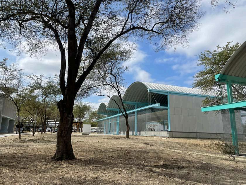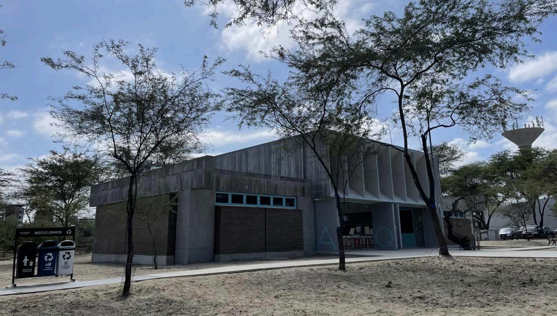 Otro eje conceptual es la austeridad material, entendida no como limitación, sino como estrategia de coherencia y sostenibilidad.Seoptóporconservarla modulaciónestructuralpreexistenteyse usaron materiales como bloques de hormigón, madera, policarbonato y metal,todoselegidosporsuresistencia, bajocostoyadaptaciónalclimalocal.