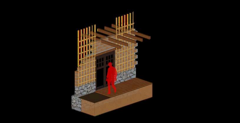 Elsistemaconstructivodelproyectono esunadecisiónaisladanitécnicaensí misma, sino que nace profundamente desde el lugar, desde cómo se construye en la sierra, desde cómo se ha construido siempre, con una lógica arraigadaenelconocimientotradicional yenlaadaptacióncontinuaalentorno. Acánosetratadeimponerestructuras foráneas ni tecnologías que generen dependencia, sino de continuar un lenguajeconstructivoqueyaexiste,que hasidoprobadoporgeneracionesyque hademostradoserfuncional,resistente y apropiado para la realidad del territorio.