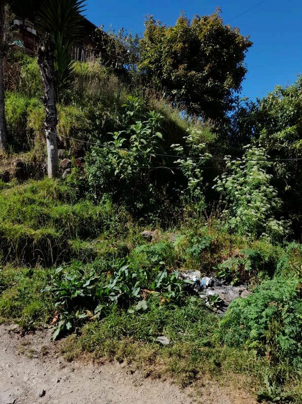 —un campo árido interrumpido por manchas verdes, restos de basura, estructuras precarias y senderos improvisadosporelusodiario.Alfondo, lasviviendastrepabanelcerroenuna secuencia no planeada pero sí profundamente orgánica. No respondíananingunaretícula,perosía una lógica de necesidad, esfuerzo y comunidad.