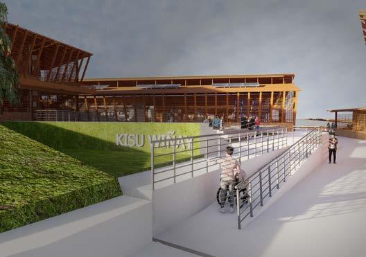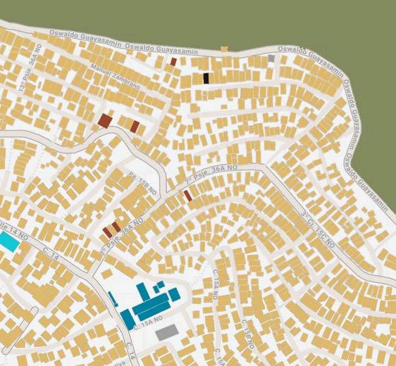 Sinembargo,elproyectoestáconectado por calles secundarias que derivan en avenidas principales como la Av. del BomberoylaAv.FranciscodeOrellana, facilitandounpocoelaccesovehiculary peatonal directo relativamente cercano desdeotrossectoresdelaciudad. Encuantoaltransportepúblico,nohay paradas inmediatas en la zona alta del barrio, pero existen rutas de buses y transporte informal que circulan por callesprincipalescercanas,desdedonde se puede acceder caminando con relativafacilidadyseguridadalproyecto. Estorepresentaunaconectividadparcial, que depende de la disposición de los usuariospararecorrertramosapie. Por último, se incorporaron rampas en ciertos puntos del proyecto, con la intención de mejorar la inclusión y facilitar el acceso. No obstante, las condicionesnaturalesdelterrenolimitan su alcance, y la accesibilidad universal aúnnoselogracompletamente.Aunasí, el diseño mejora significativamente las condiciones previas, proponiendo una circulación más segura y reconocible dentro del tejido urbano informal existente, vulnerable y en transformación.
