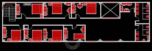 A medida que el sistema avanza, se extiendehaciaáreasdemayoractividad como la biblioteca y las aulas de capacitación,dondesehanincorporado puntos adicionales de recolección diseñadosparafacilitarlaseparaciónde materiales reciclables, orgánicos y no reciclables. Esta distribución promueve activamente una cultura de sostenibilidad entre los usuarios, incentivando su participación en la reducción del impacto ambiental a travésdecontenedoresdiferenciadosy estratégicamente ubicados. El diseño también considera accesos directos desde el ingreso principal, lo que permite una salida eficiente de los residuos hacia áreas de almacenamiento temporal antes de su traslado final, minimizando cualquier interrupción en las actividades cotidianasdelcomplejo. Las rutas de recolección han sido planificadas con detalle para evitar zonasdealtotráfico,comolospatiosy las áreas comunes, reduciendo así el impacto visual, olfativo y funcional que podría afectar la experiencia de los ocupantes.