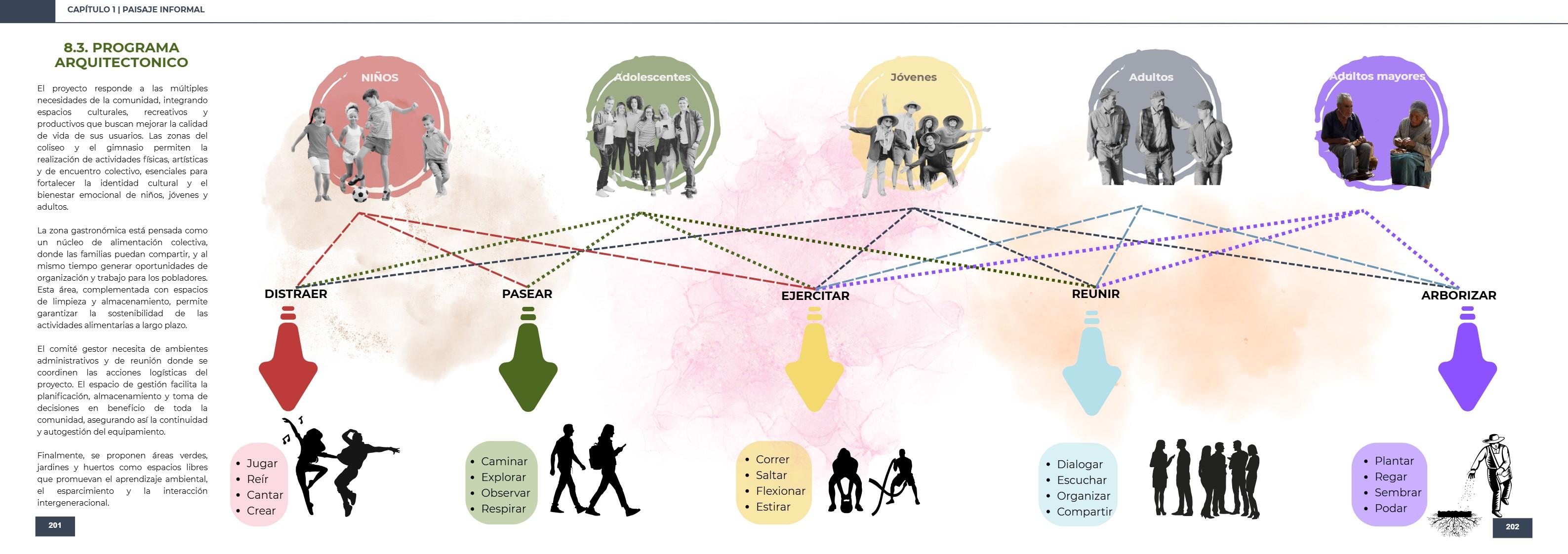 El Libro contiene las Propuestas Arquitectónicas nacidas a partir de Preexistencias Sociales y Humanas, surgidas de manera espontánea al margen de nuestra profesión, e intenta mostrar como la Arquitectura puede ser un factor de continuidad y legitimidad de estas dinámicas, y convertirlas en Hitos importantes que enmarcan y revaloran el Paisaje Humano y Natural del Lugar donde se implantan.