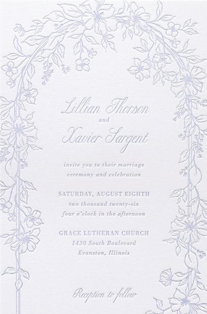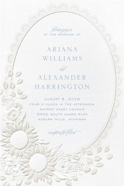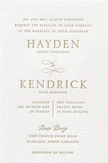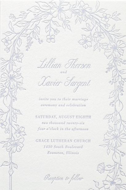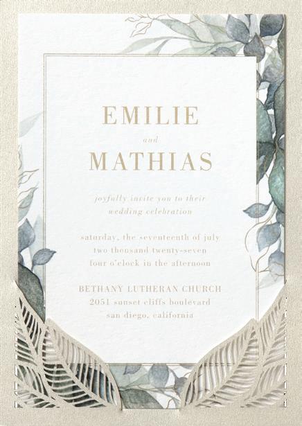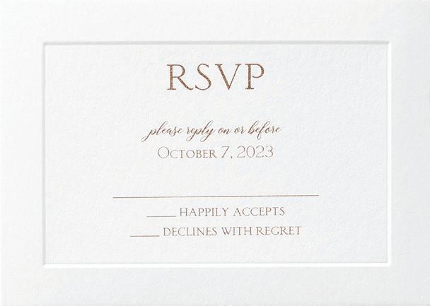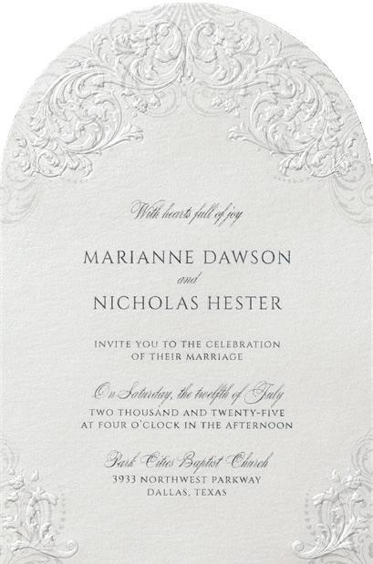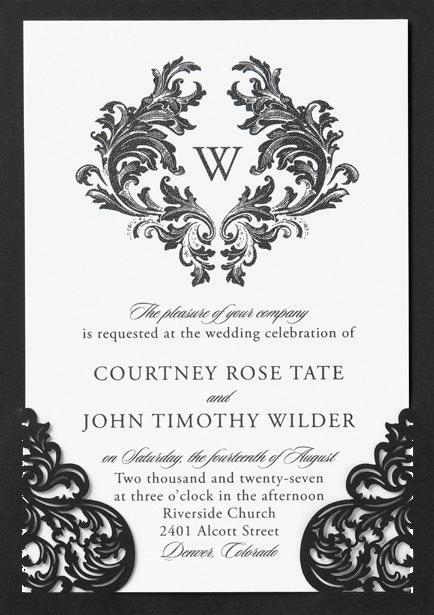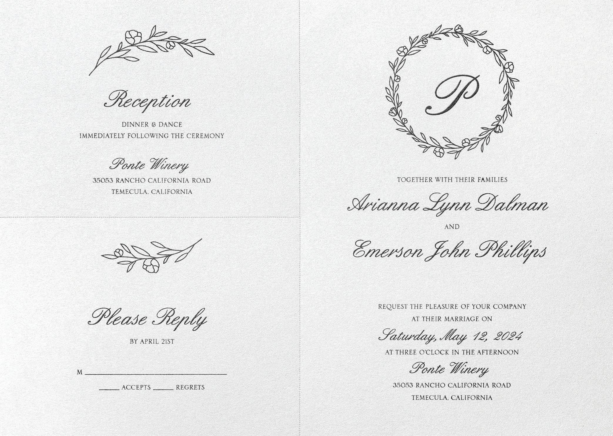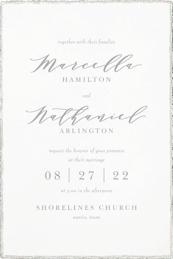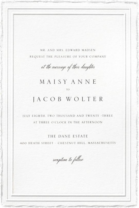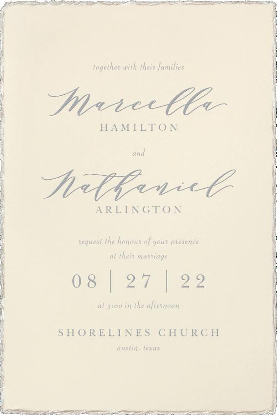 The Classic Collection is elegant and timeless, boasting aristocratic wording and elegant borders. The Collection’s beautifully embossed panel invitations are perfect for couples seeking an elegant and formal look. Its deckle edge cards capture the essence of old-world romance and feature sophisticated gold, silver or pearl foil accents. Couples seeking a simple layered look will love the Initial Impressions Invitation, which features their initials printed on an elegant wrap.