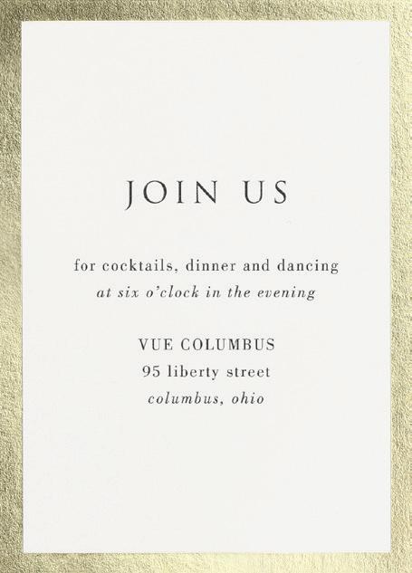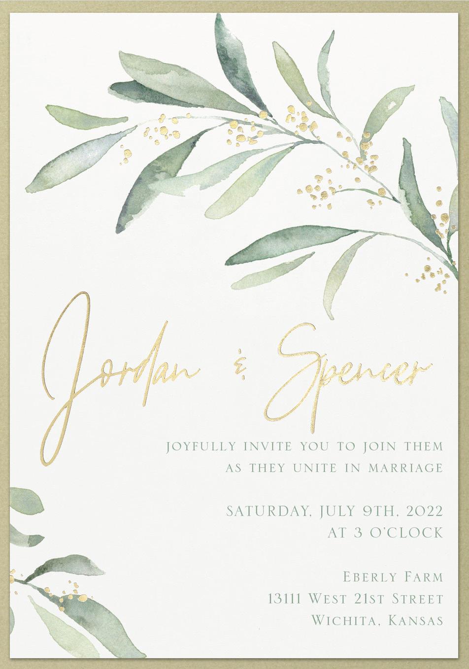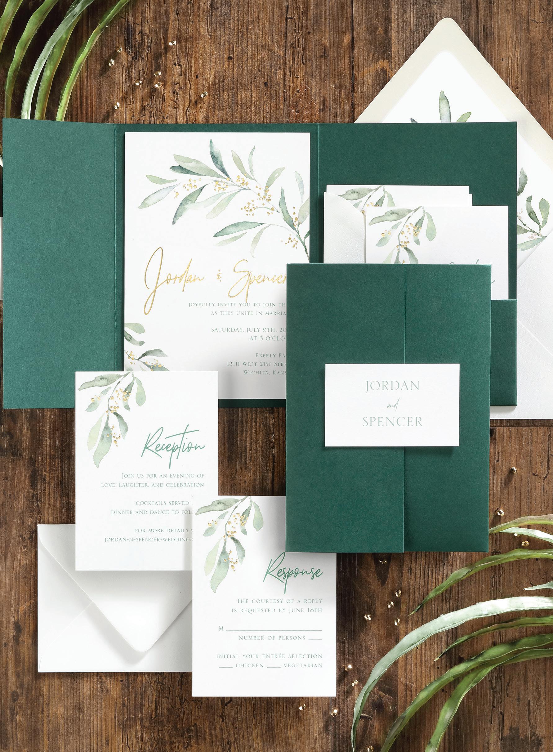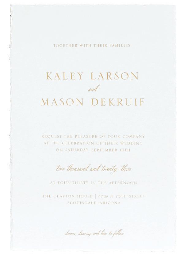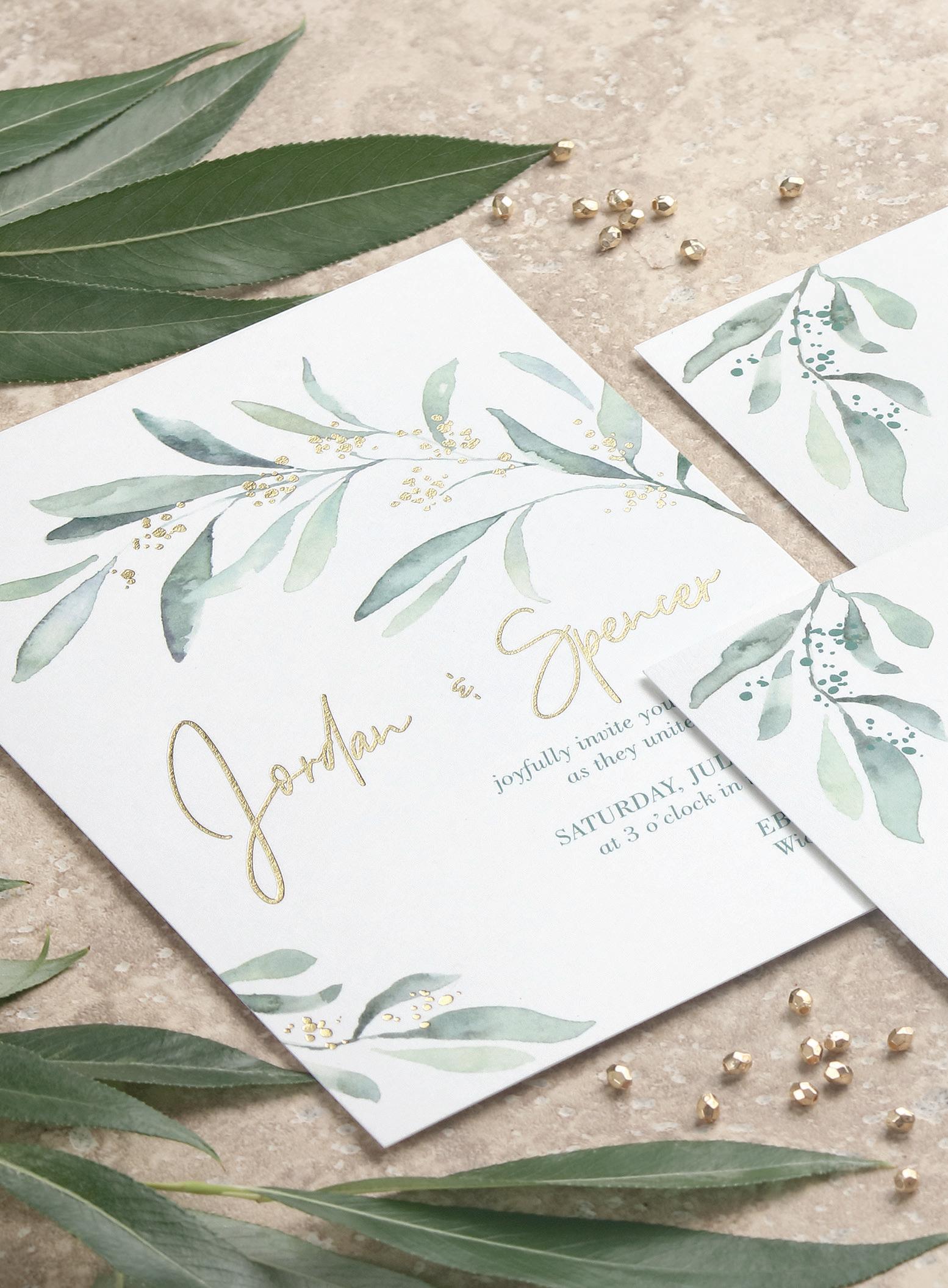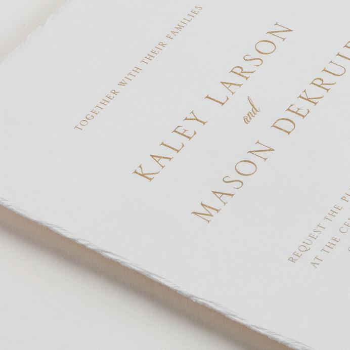 Ink/Foil: Sage Digital Ink/Gold Foil Fonts: Sydney Regular/Serlio Paper: Smooth 115 lb. Backer Paper: Gold Shimmer 105 lb.