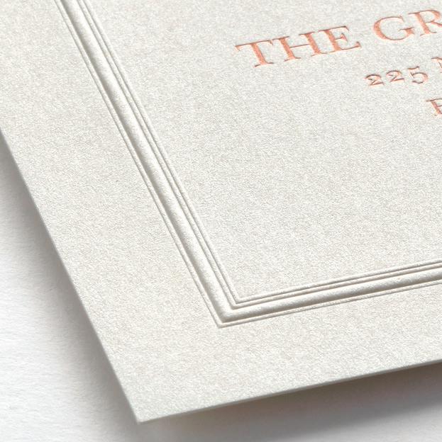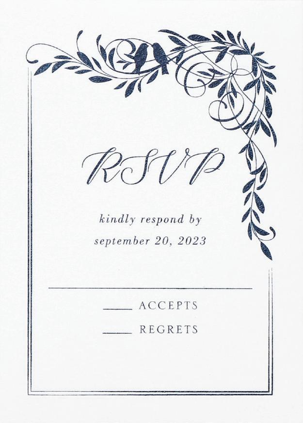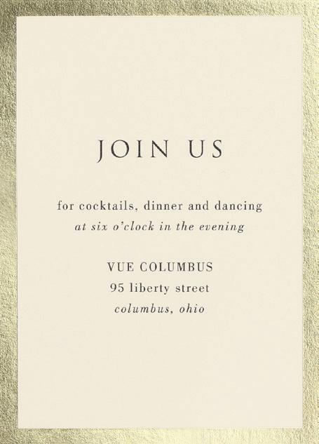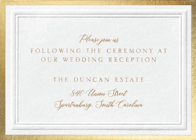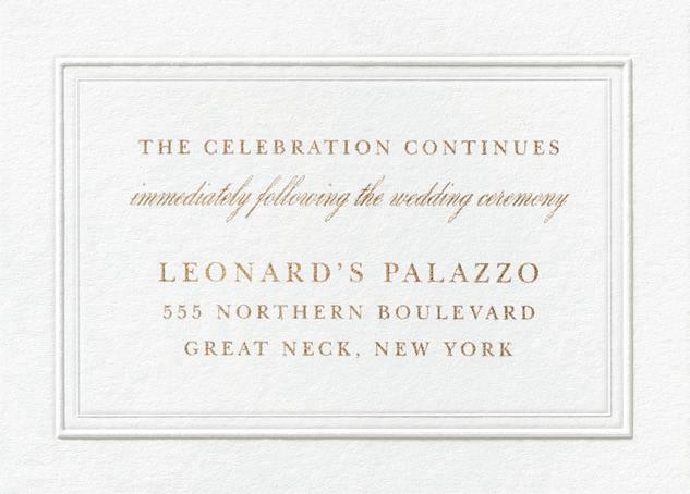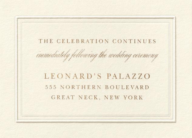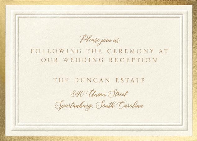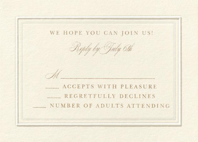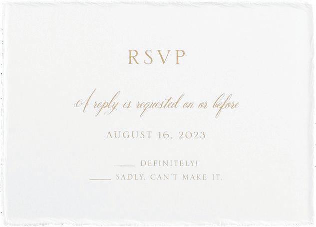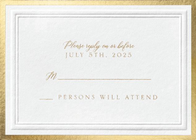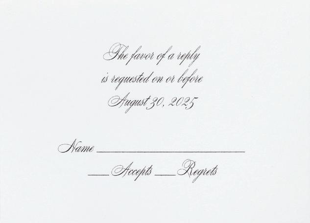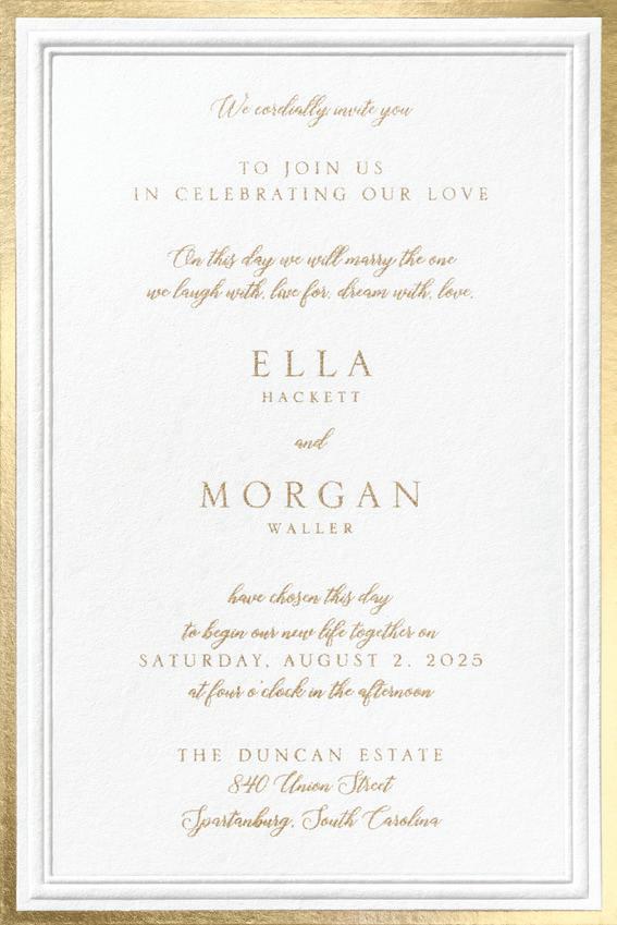 Bordered in Gold Features Ink: Gold Thermography Ink Fonts: Brunella Script/Serlio Paper: Smooth 130 lb. Price Group: C3