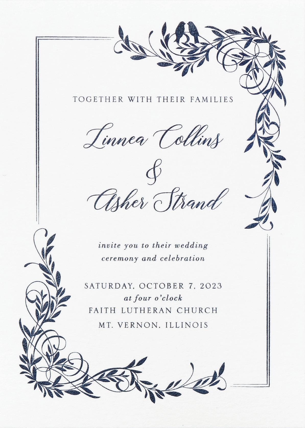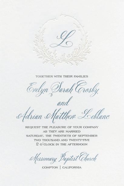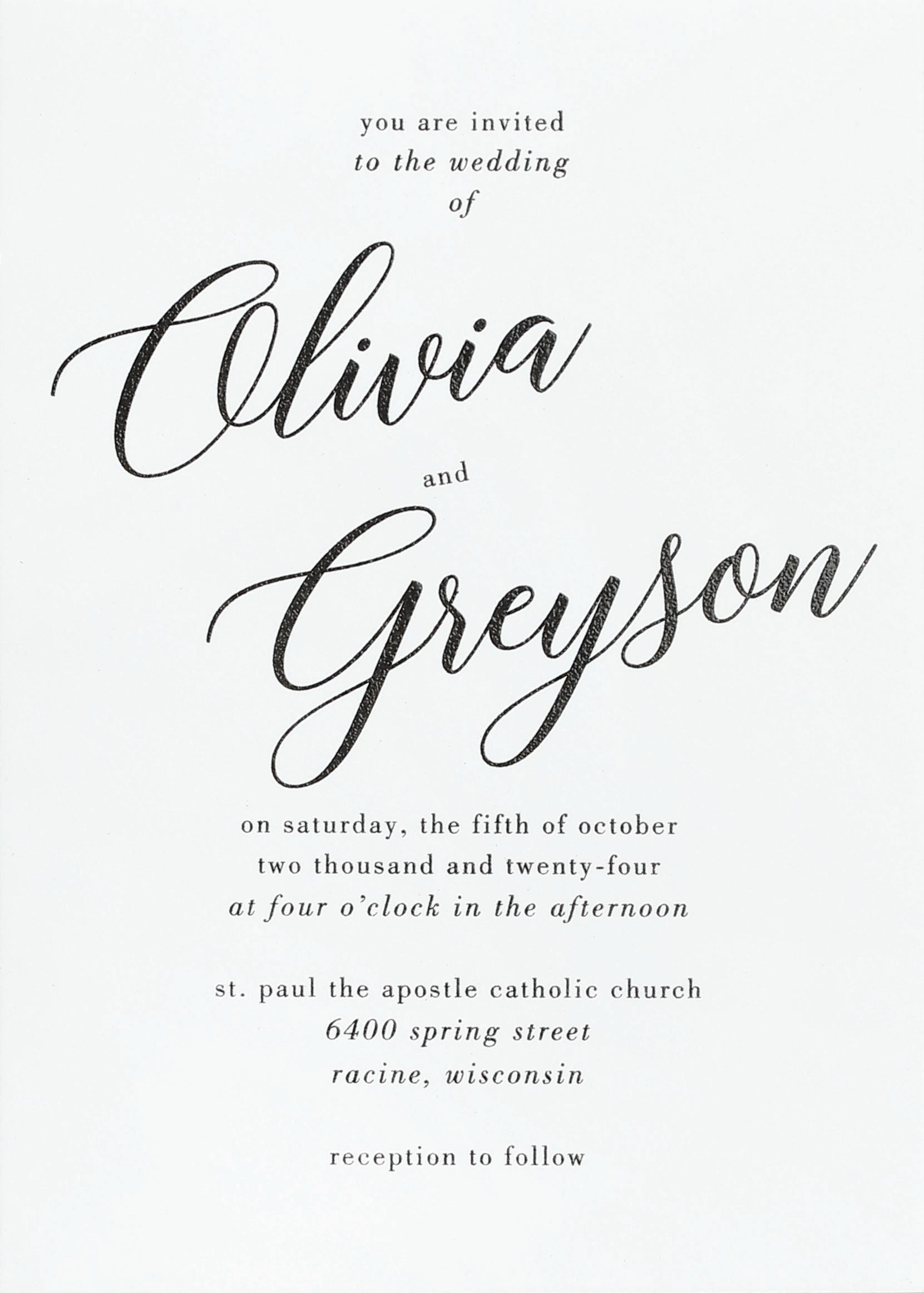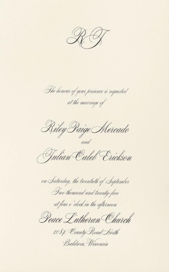 Fonts: Serlio/English Script Paper: Shimmer 105 lb.