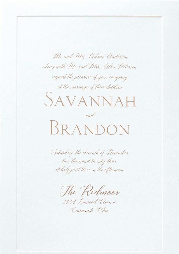 Fonts: Serlio/Copper Regular Paper: Shimmer 105 lb.