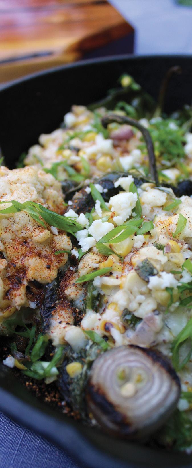 Place poblanos, zucchini and corn on grill and turn until blackened on all sides, about 15-20 minutes.