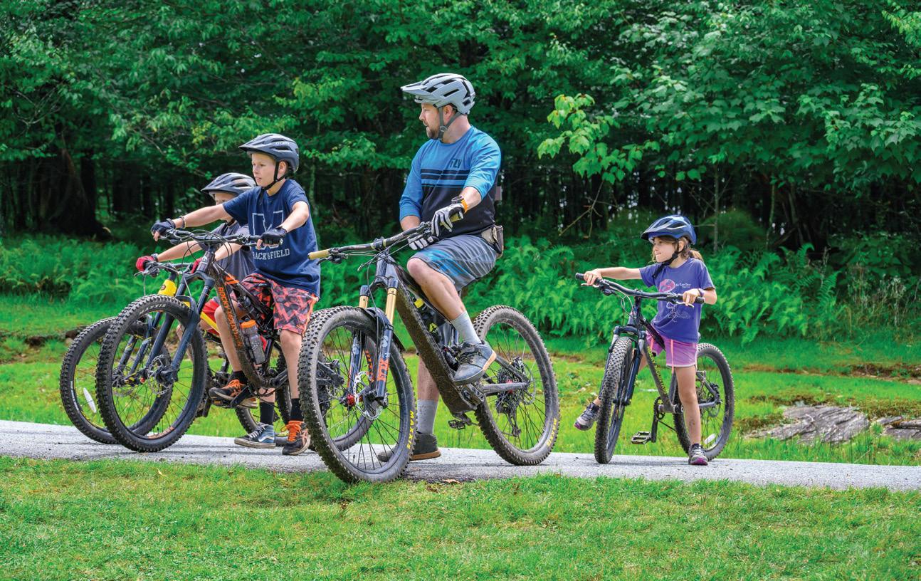From early June until late September, ski slopes become downhill mountain biking trails at Beech Mountain Resort. The Beech Mountain Bike Park provides chairlift service to the top Continued on next page