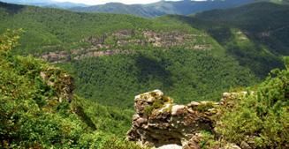 My hiking buddy and I recently took the Rough Ridge trail off the Blue Ridge Parkway and once we crested the top and got a bird’s eye view, we both thought of the Footsloggers t-shirt that reads, “Get High on a Mountain!”