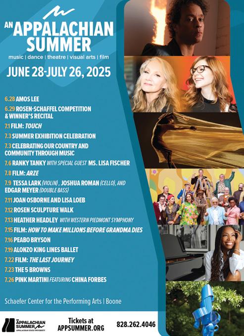 Presented by The Blowing Rock Historical Society, this year’s Artists in Residence series at Edgewood Cottage runs for 15 weeks this summer with two artists each week. During the program the cottage becomes home to 30 artists representing a variety of outstanding, original two and three-dimensional pieces. Visit Edgewood Cottage daily from 10 a.m. to 5 p.m., from Memorial Day weekend through Labor Day week. artistsatedgewood.org/2025-artists-schedule