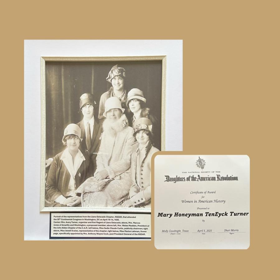 “Llano Estacado Chapter, D. A. R. in Interesting First Meeting of Year,” The Amarillo Globe-Times, 1928 (Aunt Mary chosen as one of three delegates to attend annual state convention in Galveston), and “Mrs. Avery Turner Goes to Conference” (Santa Fe, New Mexico to attend the New Mexico State Conference of D. A. R.)