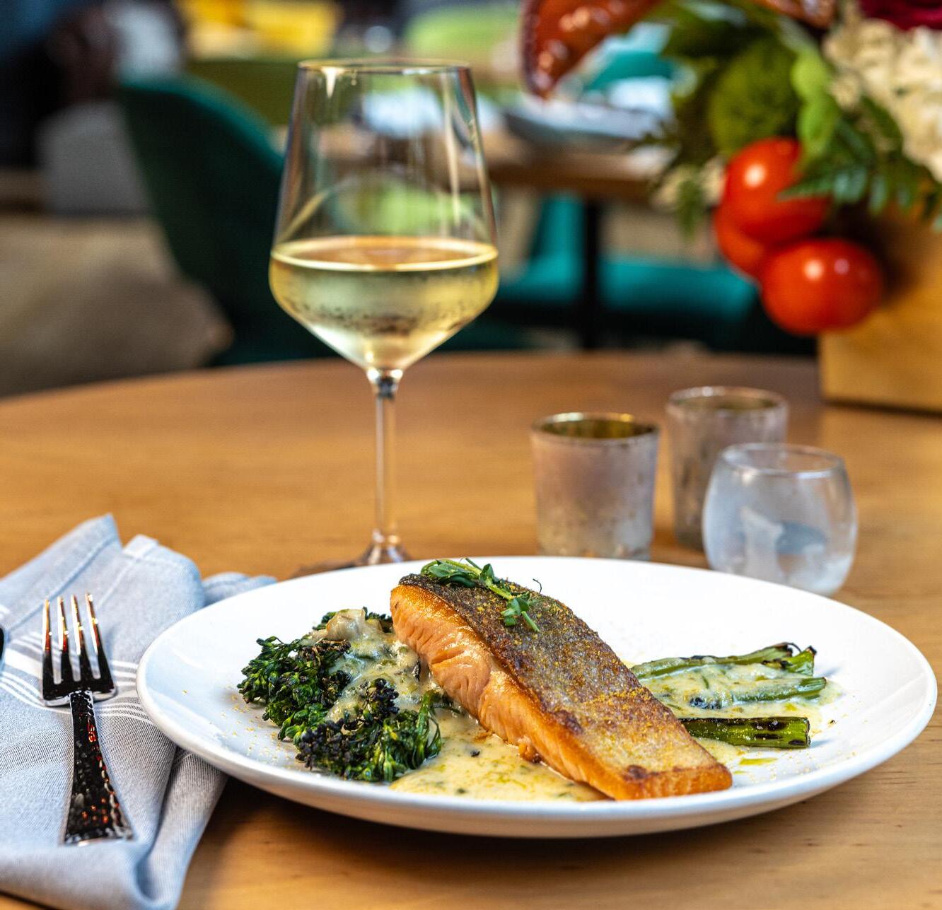 As for beverages, a handsome, wellstocked bar features a smartly curated wine list including crisp whites and robust reds from France, Italy, Spain, California, and Oregon. Eight beers are accessible on draft, including local IPAs, plus a dozen noteworthy alternatives in cans and bottles.